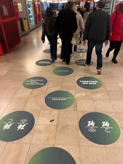 What makes the efforts of Milan Cortina 2026 unique, however, is the omnipresence of Marketing Partner Recognition, dotted across street signage, pasted to the metro's flooring, inside venues, etc. While we imagine MiCo's partners appreciate the gesture (which included portraits of actual sponsor employees), they likely would have supported using many of those assets to present the Milan Cortina “Look of the Games”, generating greater public engagement, city cohesion and excitement around the Games. (Especially if it featured more of Tina or Milo, their now globally viral mascots!).